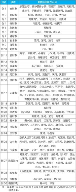 (四)地級及以上城市國家地表水考核斷面排名